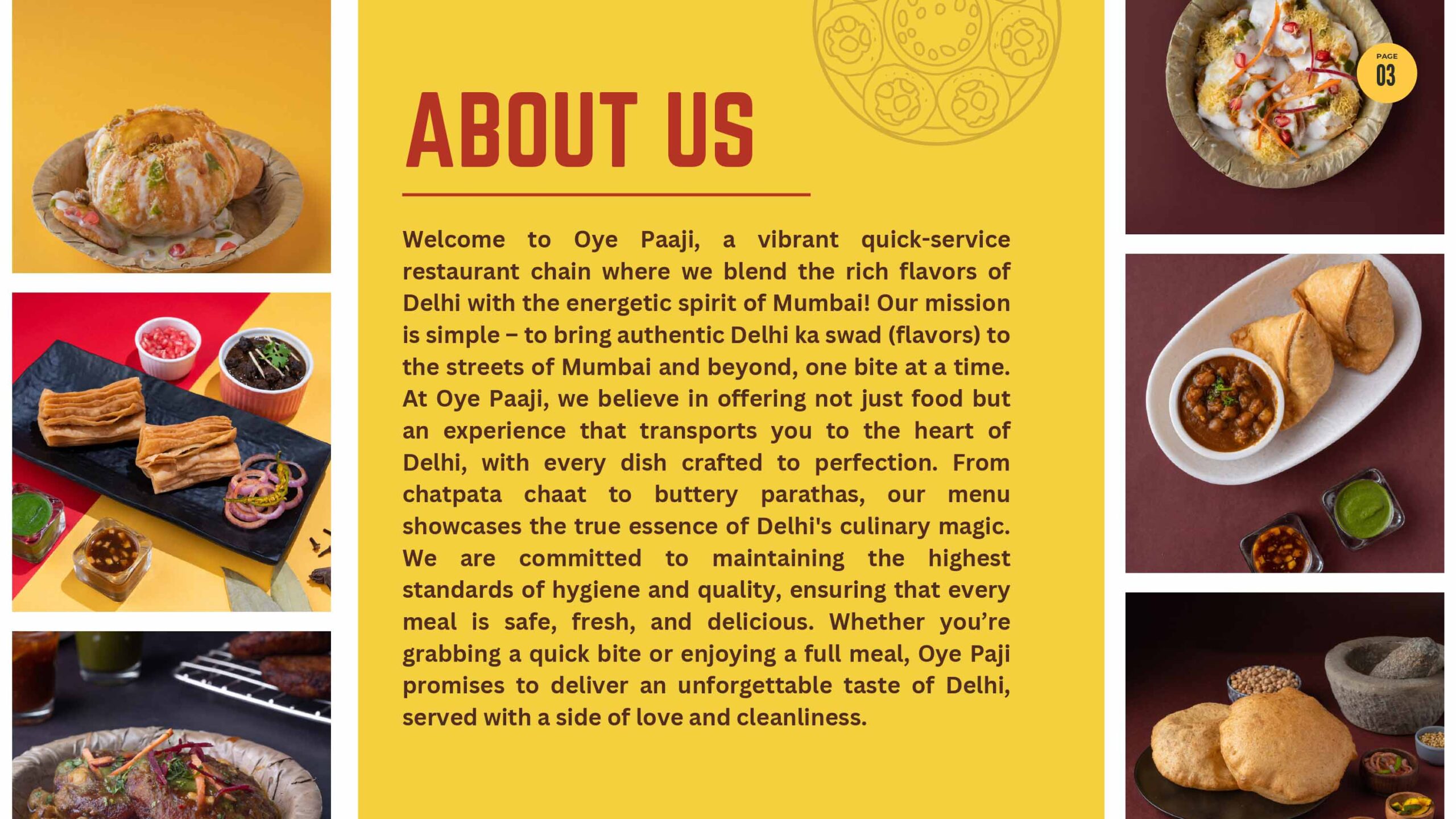Oye Paaji, a vibrant quick-service restaurant chain where we blend the rich flavors of Delhi with the energetic spirit of Mumbai! Our mission is simple – to bring authentic Delhi ka swad (flavors) to the streets of Mumbai and beyond, one bite at a time. At Oye Paaji, we believe in offering not just food but an experience that transports you to the heart of Delhi, with every dish crafted to perfection. From chatpata chaat to buttery parathas, our menu showcases the true essence of Delhi’s culinary magic. We are committed to maintaining the highest standards of hygiene and quality, ensuring that every meal is safe, fresh, and delicious. Whether you’re grabbing a quick bite or enjoying a full meal, Oye Paji promises to deliver an unforgettable taste of Delhi, served with a side of love and cleanliness.